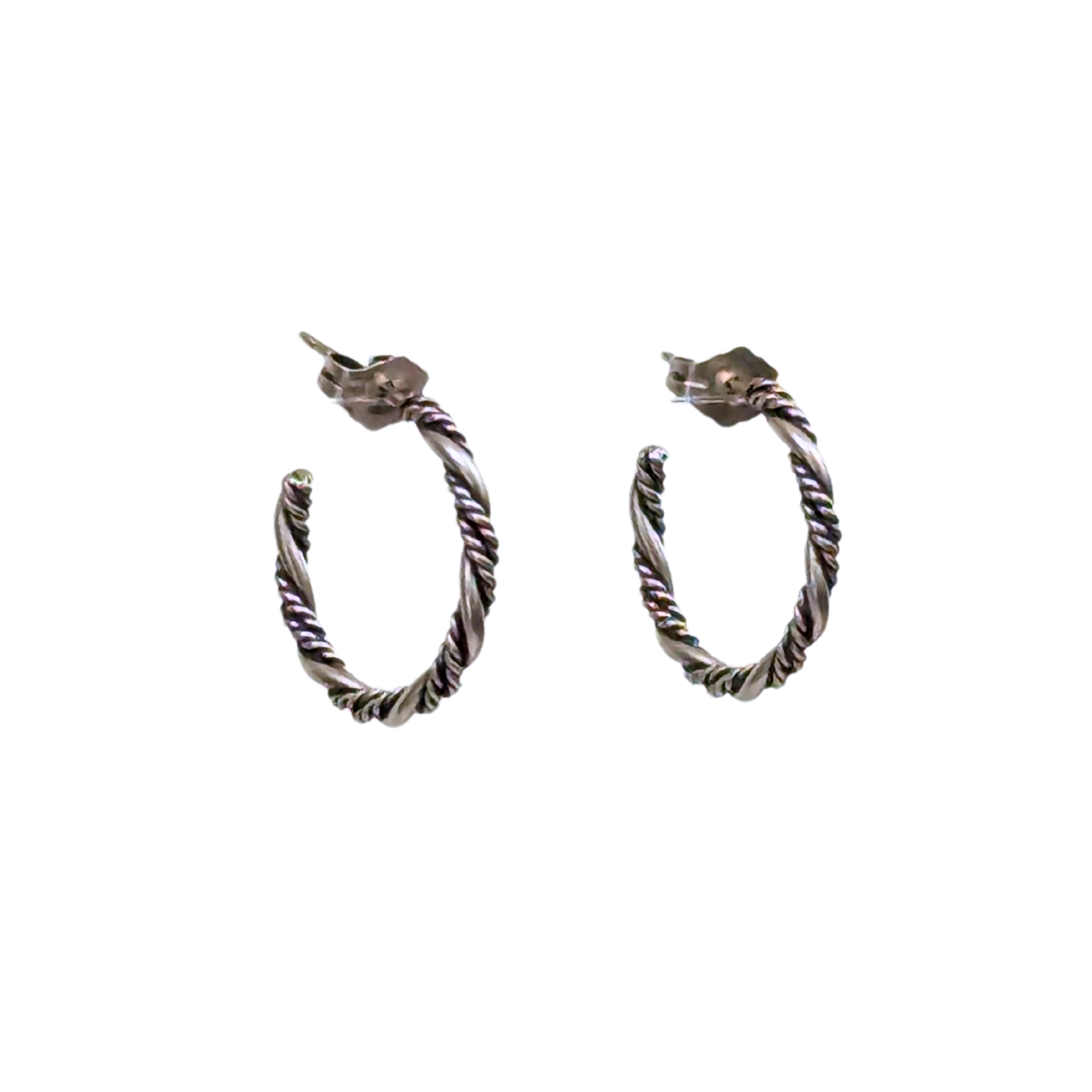 Unit price perChannel nautical elegance with the Twisted Rope Hoops. Crafted entirely from satin-finished Sterling Silver, these huggie hoops feature an interlocking twisted wire pattern symbolizing strength, unity, and security. The Twisted Rope Hoops are inspired by the tale of Odysseus, who commanded his crew to bind him to the mast so he could safely listen to the song of the Sirens without endangering his life.